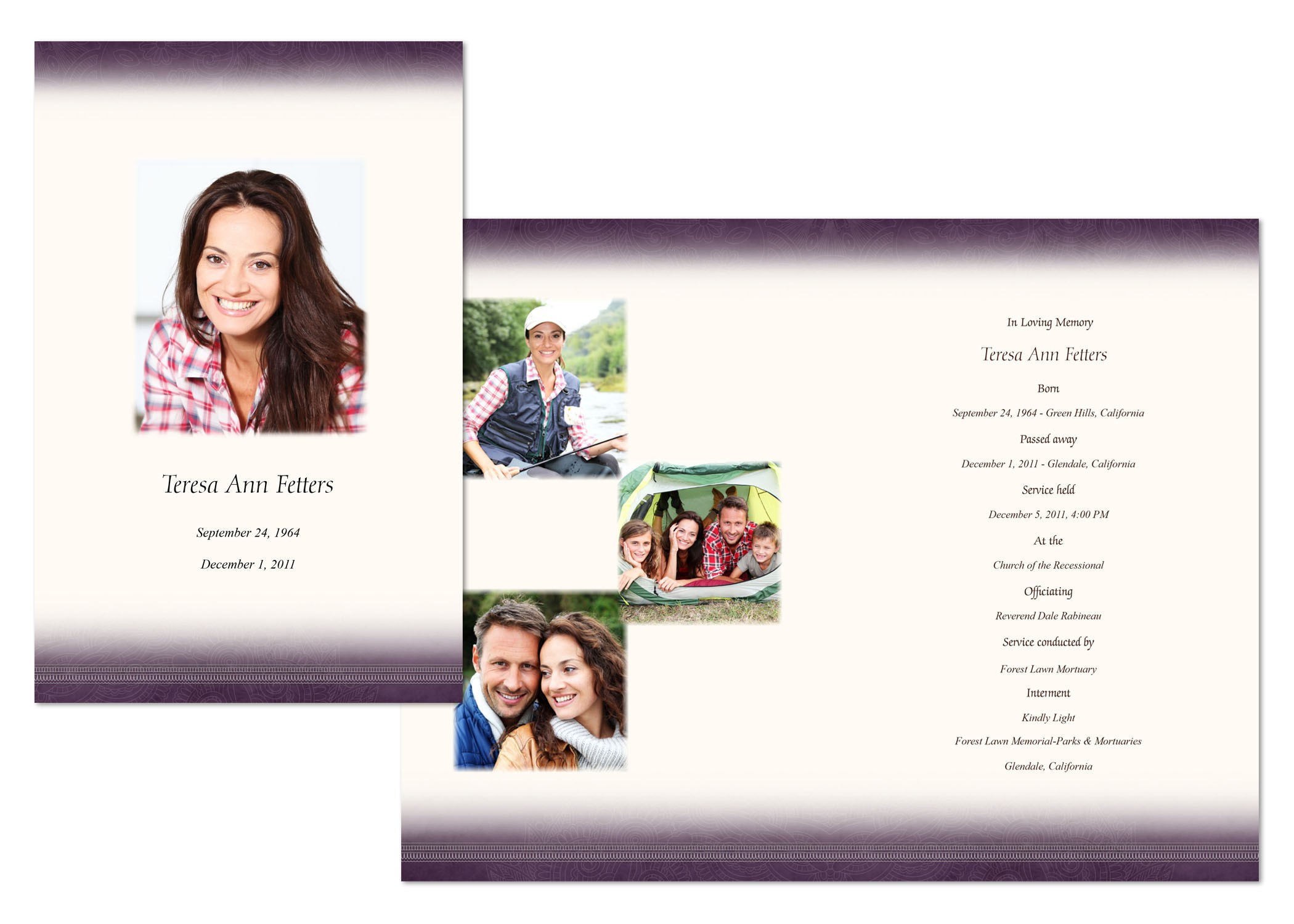 Includes memorial register book, 100 bi-fold memory folders (with 4 photos), 50 premium acknowledgement cards with photo, and a bookshelf box